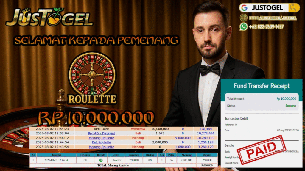 Masih ragu dengan JUSTOGEL bos ? Di mana bandar togel online sekarang yang terpercaya seperti JUSTOGEL? Bandar yang mengirimkan kemenangan member tanpa bertele tele. Jadi. tidak perlu khawatir pada situs JUSTOGEL karena kemenangan anda berapapun akan dibayarakan hingga lunas kepada pemenang.