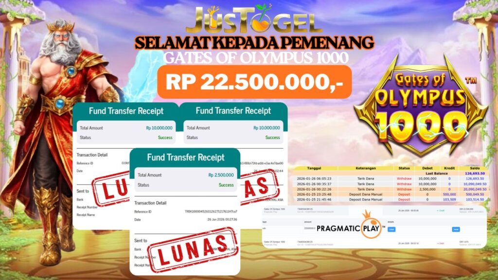 Selamat kepada User ID : TE***UTAN77 Telah berhasil mendapatkan kemenangan besar pada Permainan JP TOGEL CALIFORNIA Dengan kemenangan Sebesar Rp. 12.750.000,- Setelah mengisi formulir withdraw dengan kurung waktu hanya 5-10 menit pihak JUSTOGEL sudah melakukan transfer kepada pemilik User ID dan dana sudah dapat di cairkan oleh pemenang. Bukti pembayaran yang kami berikan merupakan bukti pembayaran yang SAH / VALID yang langung di dapatkan melaui tanda transfer transaksi dari Bank yang di tuju.