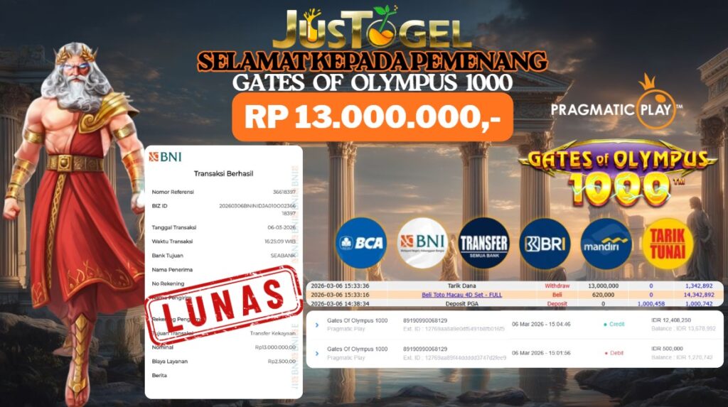 Selamat kepada User ID : DDD***M11TK Telah berhasil mendapatkan kemenangan besar pada Permainan JP TOGEL TOTOMACAO 5D GAMES Dengan kemenangan Sebesar Rp. 9.800.000,- Setelah mengisi formulir withdraw dengan kurung waktu hanya 5-10 menit pihak JUSTOGEL sudah melakukan transfer kepada pemilik User ID dan dana sudah dapat di cairkan oleh pemenang. Bukti pembayaran yang kami berikan merupakan bukti pembayaran yang SAH / VALID yang langung di dapatkan melaui tanda transfer transaksi dari Bank yang di tuju.