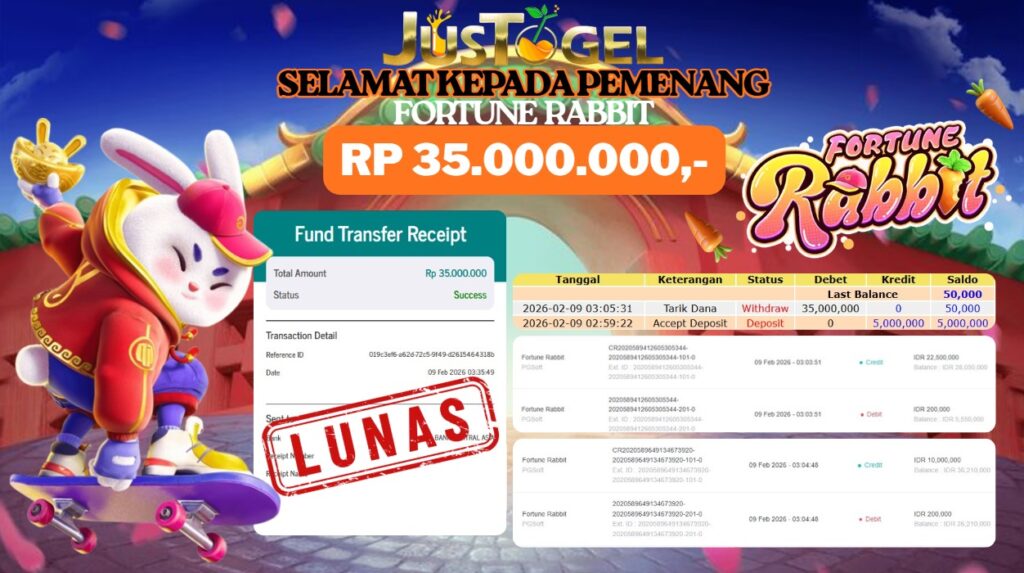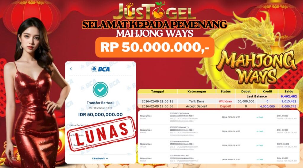 Selamat kepada User ID : CWE***NGEKL0 Telah berhasil mendapatkan kemenangan besar pada Permainan JP TOGEL TOTO MACAO 5D GAMES Dengan kemenangan Sebesar Rp. 9.700.000,- Setelah mengisi formulir withdraw dengan kurung waktu hanya 5-10 menit pihak JUSTOGEL sudah melakukan transfer kepada pemilik User ID dan dana sudah dapat di cairkan oleh pemenang. Bukti pembayaran yang kami berikan merupakan bukti pembayaran yang SAH / VALID yang langung di dapatkan melaui tanda transfer transaksi dari Bank yang di tuju.