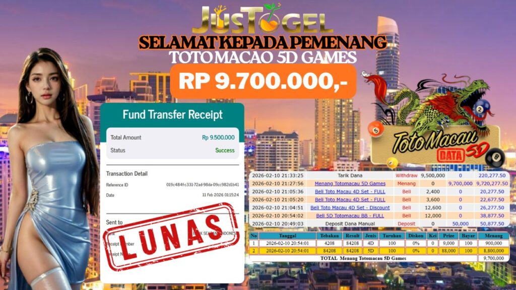 SELAMAT KEPADA MEMBER JP TOGEL TOTO MACAO 5D GAMES RP 9.700.000,- LUNAS